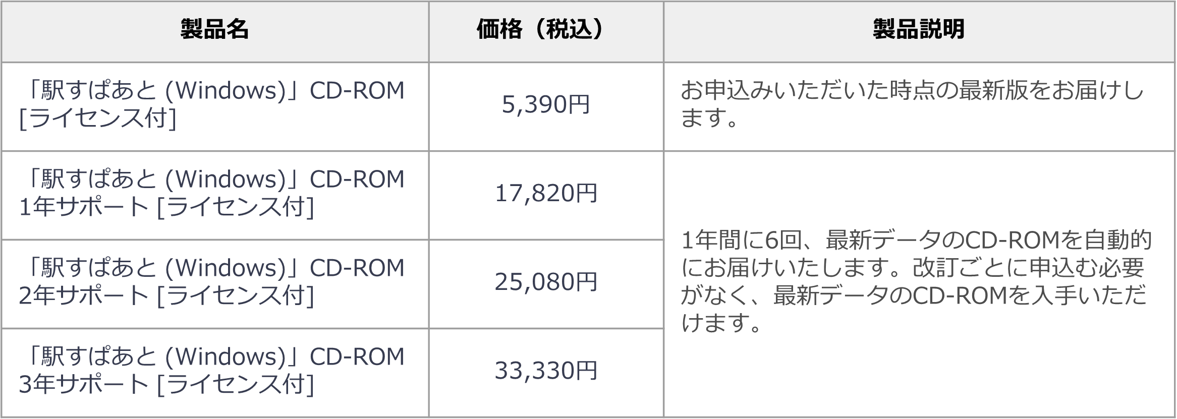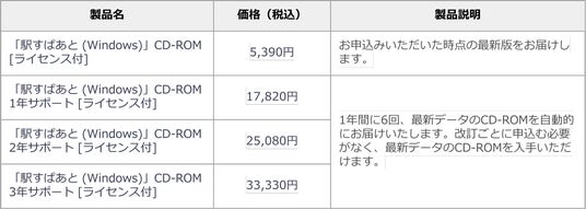 ■「駅すぱあと(Windows)CD-ROM製品」一覧