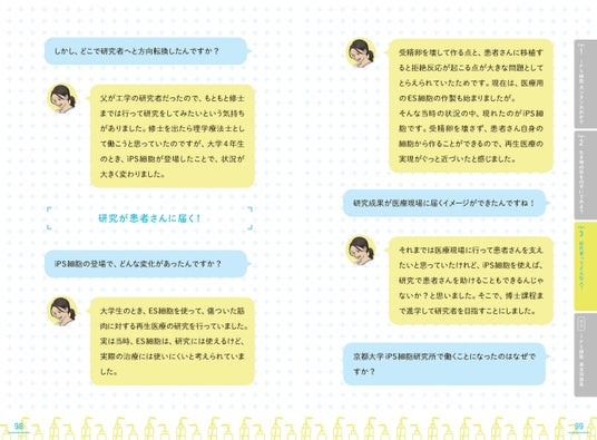 この本を通じて、iPS細胞はもちろん、生き物の体のふしぎや、科学全般について興味を深めてもらえたらうれしいです。