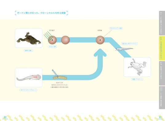 iPS細胞ができるまでには、多くの科学者が、生物の体のしくみを研究してきた歴史があります。山中博士とノーベル賞を共同受賞したジョン・ガードン博士も、生物学の歴史に大きく貢献した一人です。多くの研究の積み重ねがiPS細胞の開発成功につながり、iPS細胞を医療に役立てるための支えになっているのです。
