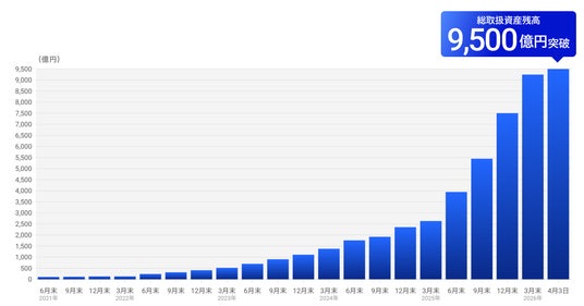 SBIグループで革新的な金融ソリューションを提供する株式会社FOLIOホールディングス(本社:東京都千代田区、代表取締役社長 兼 CEO:甲斐 真一郎、以下、「当社」)は、2026年4月3日時点で、当社の総取扱資産残高(※)が9,500億円を突破したことをお知らせします。