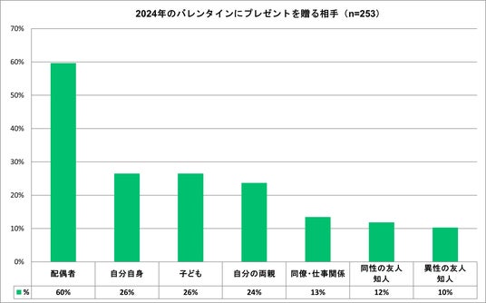バレンタインにプレゼントを贈る相手、「自分自身」は前年比で9ポイント増