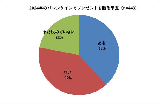 2024年のバレンタインで「贈る予定がある」と回答した方は38%となりました。