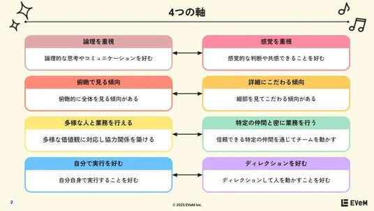 EVeM代表の長村禎庸氏は「これまで経験や勘に頼りがちだったマネジメントを、誰でも実行可能なテクノロジーへと進化させることが私たちのミッションです。この診断を通じて、マネージャーやメンバー同士がお互いの特性を理解し、強みを活かし合えるチームを作ることができます」と語っています。