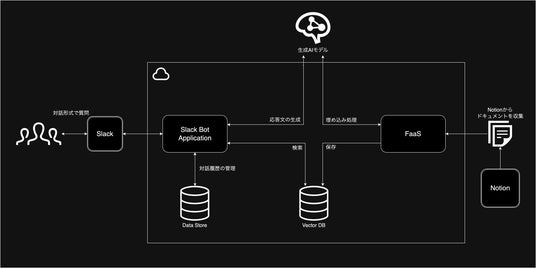 - 社内の膨大なNotionドキュメントから必要な情報を抽出し、大規模言語モデルを用いて質問に対する応答文を生成