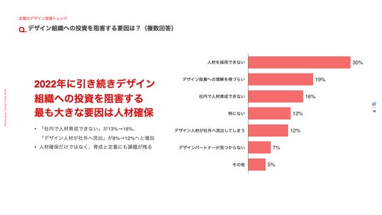 - デザイン投資を阻害する要因を「人材採用」と回答した企業は最多の30%