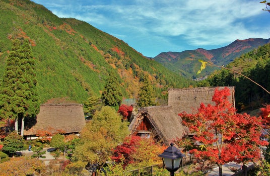 ■「下呂彩朝楽本館」より車で約8分。合掌造りと紅葉で昔懐かしい秋の風景を感じる