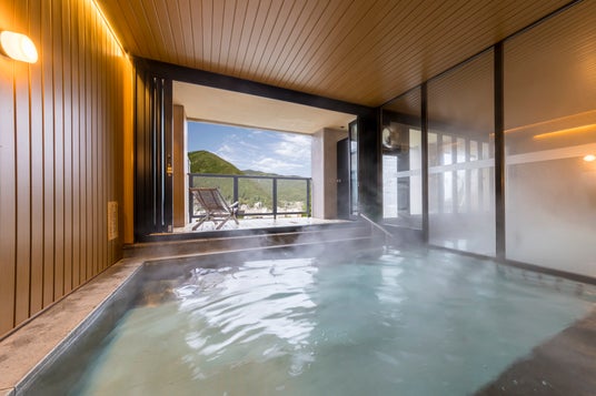 前述の「下呂温泉合掌村」の紅葉を楽しむなら「湯快リゾートプレミアム 下呂彩朝楽本館」がおすすめです。2024年11月1日、「大江戸温泉物語グループ」とのブランド統合により、「大江戸温泉物語Premium 下呂本館」としてリニューアルOPENを迎える本宿は、下呂のお湯を楽しみながら、昼は飛騨の山々を、夜は美しい夜景を一望できる宿です。プレミアムラウンジ、巣籠まんがコーナー、キッズパークなどを新規導入することで、家族の楽しい時間も、大人のくつろぎの時間も満喫いただけます。レストランでは牛肉の朴葉味噌焼きや郷土料理の鶏ちゃん焼きなどご当地メニューをお楽しみいただけます。