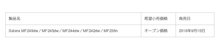 キヤノンは、「Satera」シリーズの新製品として、ビジネス向けA4モノクロレーザー複合機“Satera MF249dw”など5機種を2016年9月15日に発売します。