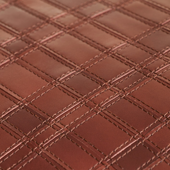 濃淡のあるレザーを格子状にして生まれる、すべてが1点モノの特別感
