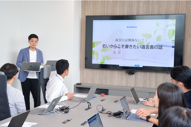 Authense法律事務所(東京都 港区)は、2023年8月9日(水)に「若いからこそ書きたい遺言書の話~遺言書に対するイメージが変わる1時間~」というテーマのもと、「遺言書作成体験会」と称した所員向けのワークショップを開催しました。今回は、100件以上の遺言書作成補助をしてきた当事務所の弁護士 三津谷 周平が講師を務め、20~40代の所員12名が参加しました。