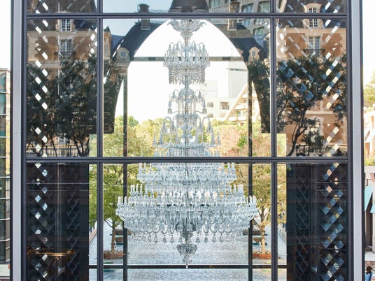 バカラの起源は1764年、時の国王、ルイ15世の認可を受け、フランスのバカラ村に誕生したガラス工場にはじまります。1824年にフランスで初めてクリスタルのシャンデリアを制作。1855年のパリ万国博覧会で、巨大な燭台2基と140灯のシャンデリア一基を披露して以来、さまざまなデザイン、スケールのシャンデリアを制作してきました。バカラの創造性が自在に発揮されたそれらの作品は世界で賞賛の的となり、各国の王侯貴族や実業家はこぞって自邸に、建築家は作品となった建築物に飾りました。それは成功の象徴であり、またあるときには建物や空間に芸術的完成をもたらすものでした。シャンデリア、それはバカラクリスタルによる光の芸術なのです。
