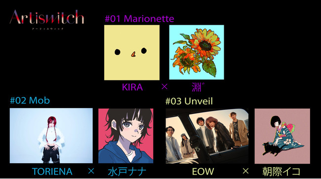 また#02は、アーティスト・TORIENA×イラストレーター・水戸ナナ、#03はアーティスト・EOW×イラストレーター・朝際イコのコラボレーションが決定!『Artiswitch』の新たな展開と、今後のクリエイターのコラボレーションにもぜひご注目ください。