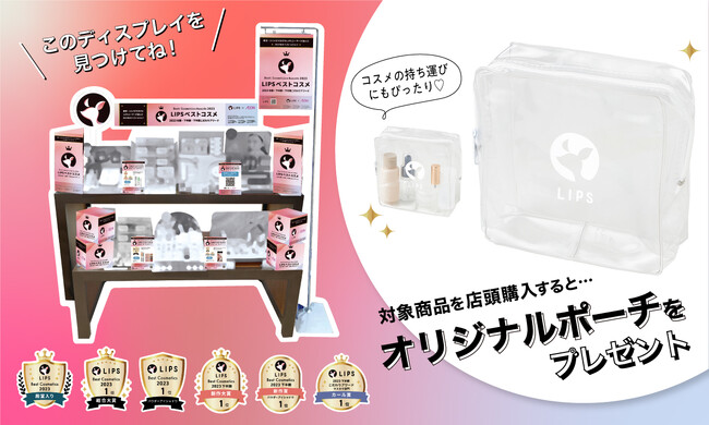 そして本州・四国のイオン・イオンスタイルのグラムビューティーク(*1)では、編集部が厳選した「LIPSベストコスメ2023」受賞アイテムが手に入る、特別コラボディスプレイも本日より順次設置されます。