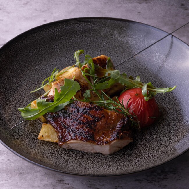 ・淡路どりもも肉のディアボラと胸肉のスピエディーノ 、クリスピーローズマリーポテト、フルーツトマト