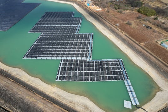 太陽グリーンエナジーは、再生可能エネルギー特別措置法に基づく再生可能エネルギー全量買取制度導入にともない、2015年10月21日に嵐山花見台工業団地(埼玉県比企郡嵐山町)の調整池にて同社初となる水上太陽光発電を開始しました。本発電所を含め、これまでに埼玉県、岐阜県、愛知県、三重県、大阪府、兵庫県、奈良県、香川県の8県で計18基の水上太陽光発電施設を開設し、国内エレクトロニクス事業及び医療・医薬品事業における外部購入電力消費量相当を発電しています。