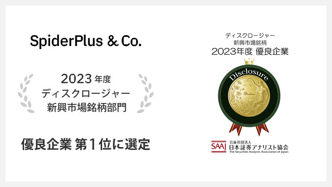 建設DXサービス「SPIDERPLUS」を提供するスパイダープラス株式会社は、公益社団法人日本証券アナリスト協会が実施する「証券アナリストによるディスクロージャー優良企業選定」において新興市場銘柄部門の優良企業(第1位)に選定されたことをお知らせいたします。