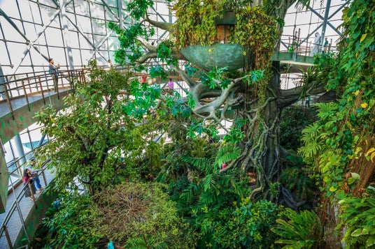 「ザ・グリーン・プラネット」は、ドバイのシティウォークに位置する熱帯雨林の生態系が屋内に再現されたバイオドームです。約3,000種以上の植物や動物が共存するこの空間は、カノピー、ミッドストーリー、フォレスト・フロア、フラッデッド・レインフォレストの4つのフロアで構成され、ナマケモノや自由に飛び交う鳥類、爬虫類、昆虫などを間近で観察できます。勢いよく流れる滝や巨大な人工の樹を中心に、五感を刺激する没入型の空間が広がり、熱帯雨林の生態系を体験的に学べる教育施設としても高く評価されています。