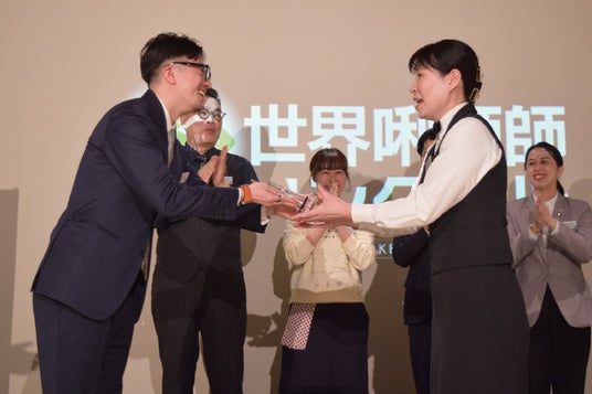 審査の結果、総合優勝を獲得したのは、台湾のGolden&Aftergloソムリエ 黃 鳳誼(コウ・ホウ・ギ)氏でした。料飲サービス部門の優秀賞はOrigami SakeソムリエのSamuel Barickman(サミュエル・バリックマン)氏、小売サービス部門の優秀賞は、TASTING ROOM F オーナー講師であり、飯田サポートシステム 酒類販売スタッフの藤川 智子氏でした。藤川氏はSAKE HUNDRED賞も受賞し、ダブルでの受賞となりました。