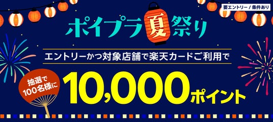 楽天カード株式会社(以下「当社」)は、「楽天カードポイントプラス」で「<ポイプラ夏祭り>抽選で100名様に10,000ポイント!」キャンペーンを本日8月1日(木)から開催します。