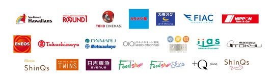 スパリゾートハワイアンズ/ラウンドワン/TOHOシネマズ/カラオケ館/カラオケ コート・ダジュール/福岡空港/ニッポンレンタカー/ENEOSサービスステーション/高島屋/大丸松坂屋百貨店/マルイのネット通販マルイウェブチャネル/沖縄アウトレットモール あしびなー/イーアス沖縄豊崎/東急百貨店/渋谷ヒカリエ ShinQs/町田東急ツインズ/日吉東急アベニュー/東急フードショー/東急フードショースライス/+Q(プラスク)/ShinQs ビューティーパレット