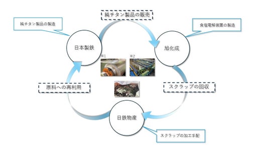 日鉄物産株式会社(以下、「当社」)は、旭化成株式会社(以下、「旭化成」)ならびに日本製鉄株式会社(以下、「日本製鉄」)と協業し、食塩電解セルの製造工程で発生する純チタンスクラップのリサイクルスキームを構築しました。