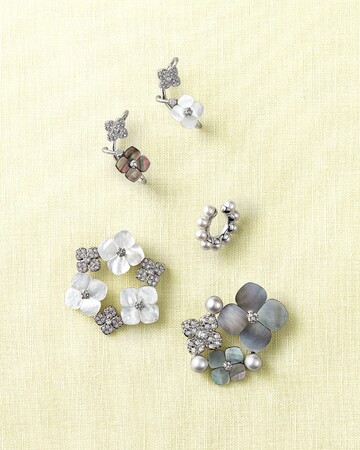 シンプルベーシックな形を追求し、質のよい蝶貝で1つ1つ丁寧にかたどったフラワーモチーフは、ヴァンドームブティックで長く愛されているモチーフ。新たに登場したアイテムは、繊細な輝きのパヴェフラワーが魅力。
