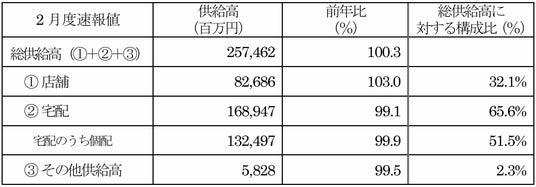 〇2月度の総供給高は、100.3%で前年超えとなりました。