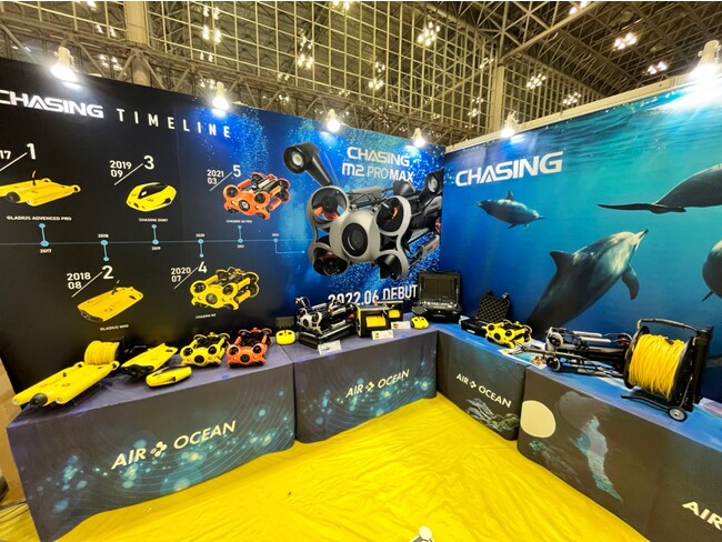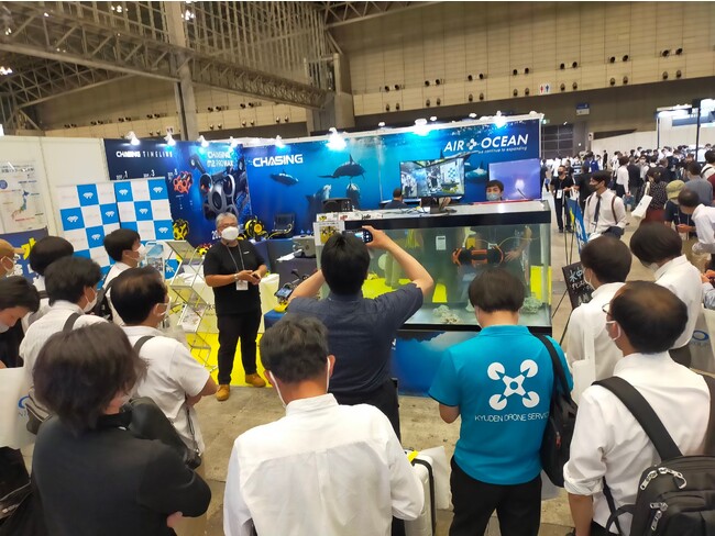 株式会社スペースワンブースは、機体の展示に加えて実際に水槽を設置。最新機種の操縦も体験することができますので導入を検討されている方は具体的な検討が可能になります。