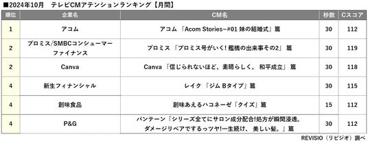 トップ3には「アコム」「プロミス」「Canva」のCMがランクイン