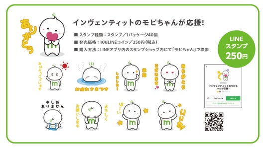 モビちゃんLINEスタンプ「インヴェンティットのモビちゃんが応援!」より