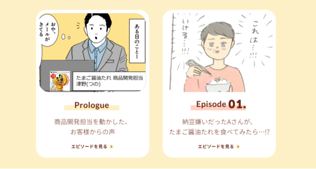 このたび、お客様のたまご醤油たれにまつわるエピソードを募集するキャンペーンを展開するとともに、同日公開の特設サイトでは、SNSで人気のクリエイター「ぎゅうにゅう」さんと「羊の目」さんが、たまご醤油たれの商品開発担当者が今回のキャンペーンを実施することになったきっかけや、実際にお客様から届いた心震えるエピソードを、SNSで人気のクリエイター「羊の目。」さんと「ぎゅうにゅう」さんが漫画にしてご紹介いたします。