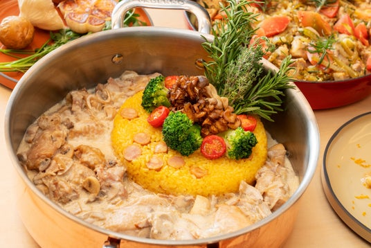若鶏とポルチーニのフリカッセ サフランライス添え イメージ