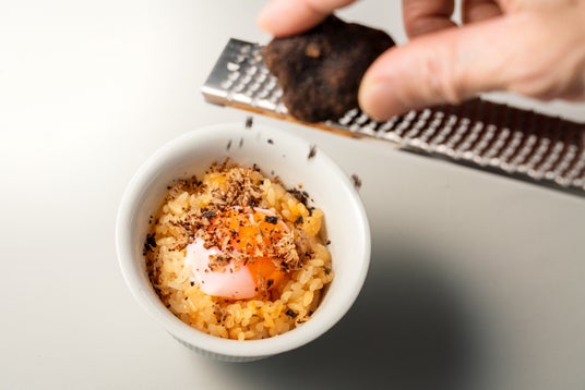 コースの〆の一皿は「TKG(トリュフかけご飯)」。ご提供の際のお客様の目の前でトリュフを削るパフォーマンスも含めてお楽しみください。