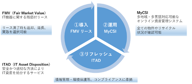 CSIはIT機器のFMVリース(※2)とITADサービス等を組み合わせたITライフサイクルマネジメントサービスに強みを持ち、世界50ヵ国以上でサービスを展開するグローバル大手のリース会社です。ITADサービスは、特にガバナンス・コンプライアンスを重視するグローバル企業を中心に、IT機器の導入においてニーズが高まっております。CSIは100%子会社であるEPC, Inc.(本社:米国・ミズーリ州、以下「EPC」)が有する高品質なITADサービスをこれまで世界22拠点で展開し、年間150万件以上ものデータ消去や機器の破砕処理を安全かつ適切に実施してまいりました。