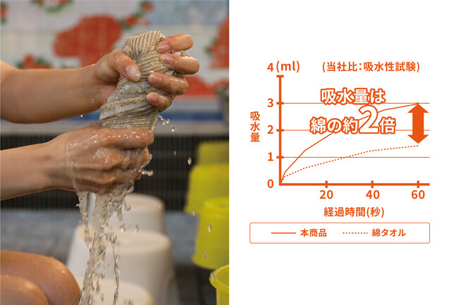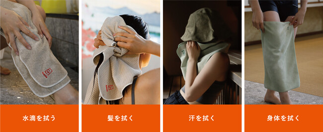 体に付いた水滴をサッと拭きとりやすい90cm×30cmのスタンダードなタオル。水気もしっかりと絞ることができるので、外気浴やお風呂上がりにとても便利です。また、髪を掴むように拭くだけで、髪に残った水分をしっかりと吸水することが出来ます。ゴシゴシ拭き取る手間が減って、入浴後もしっかりと髪が乾かしやすくなります。