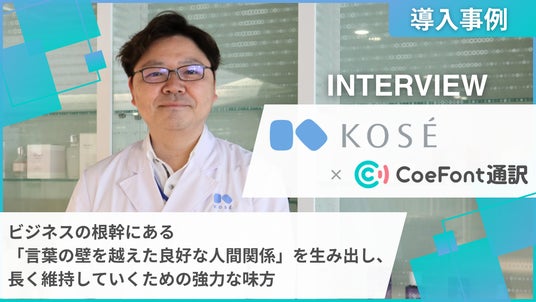株式会社CoeFont(本社:東京都港区、代表取締役:早川 尚吾)は、株式会社コーセー(以下、コーセー)が、グローバルにおけるパートナーシップ強化と円滑な意思疎通の実現に向け、多言語リアルタイム翻訳サービス「CoeFont通訳」を導入した事例を公開しました。