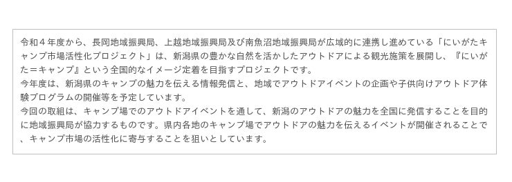 (参考)「にいがたキャンプ市場活性化プロジェクト」について