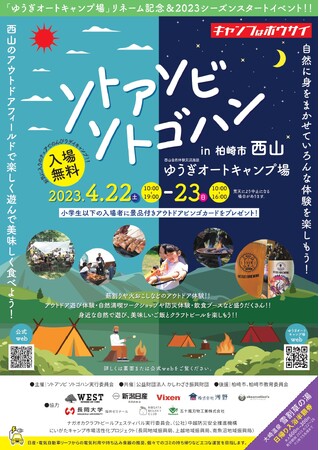 キャンプが全国的にブームとなっています。長岡、上越及び南魚沼地域振興局では、自然豊かなアウトドアフィールドを活かし、「キャンプといえば、やっぱ新潟でしょ!」と言われることを目標に、 アウトドアの魅力を県内外にアピールする「にいがたキャンプ市場活性化プロジェクト」を連携して進めています。 このたび、長岡地域振興局が企画・運営で協力する「ソトアソビ ソトゴハン in 柏崎市西山」を下記のとおり開催します。 2023 年のキャンプシーズンの始まりに、新潟県民が、身近な自然で遊び、気軽に楽しむ姿を発信することで、新潟のアウトドアシーンを盛り上げていきます。 多くの皆様に参加していただきますよう、よろしくお願いします。