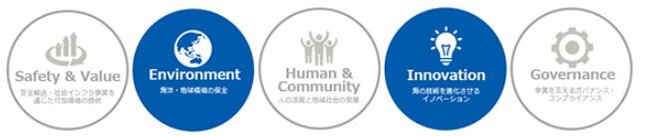 商船三井グループでは、事業を通じて優先的に取り組むべき社会課題として特定した「サステナビリティ課題」への対応を推進することで、持続可能な社会の実現に貢献します。本件は、5つのサステナビリティ課題の中でも特に「Environment 海洋・地球環境の保全」「Innovation 海の技術を進化させるイノベーション」にあたる取り組みです。