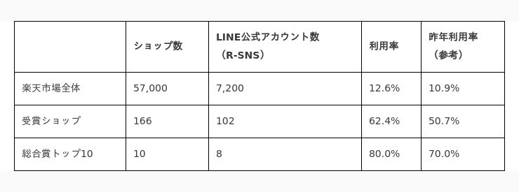 受賞ショップの6割、ベスト10は、昨年より10ポイント上昇し8割のショップがLINEを活用