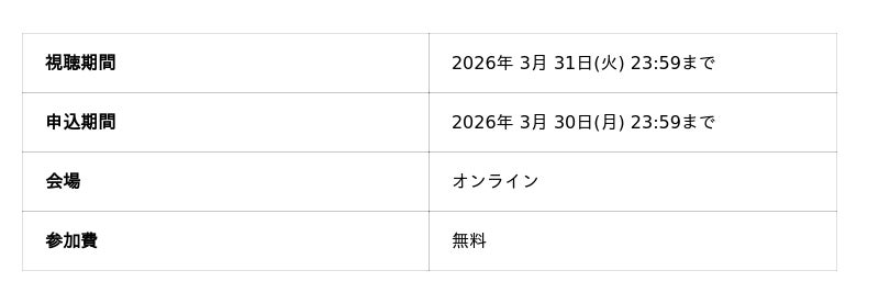 [表: https://prtimes.jp/data/corp/104608/table/129_1_446b684fa49f91ba660281ea3d925233.jpg?v=202603111145 ]