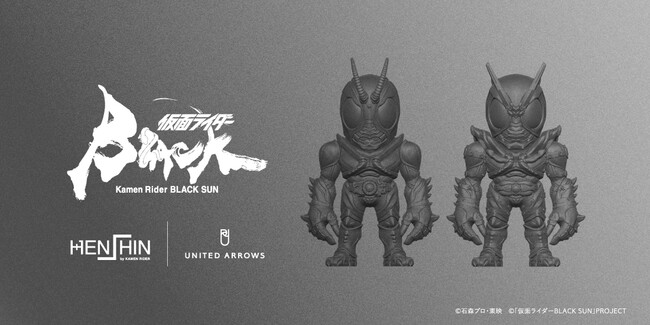 アイテムは、国内外で活躍するフィギュアアーティスト「TOUMA」デザインのオリジナルデフォルメフィギュア「仮面ライダーBLACK SUN」と「仮面ライダーSHADOWMOON」の受注販売と、赤と緑のキングストーンの融合をテーマに、抽象的なモチーフに落とし込んだファッションアイテムを10月29日(土)よりユナイテッドアローズ 六本木ヒルズ店とオンラインにて販売します。フィギュアは同日より、同店舗にて店頭受注を開始し、11月8日(火)よりオンラインとHENSHIN by KAMEN RIDERでの受注販売を予定しています。