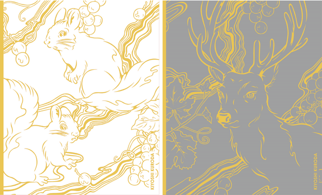 ワインの爽やかで芳醇な香りからインスピレーションを受けて、葡萄の豊かな香りと木々の生命力に引き寄せられてあつまる動物たちを描きました。