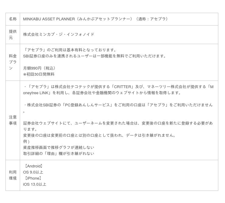 株式会社ミンカブ・ジ・インフォノイド(以下「ミンカブ」、本社:東京都千代田区、代表取締役社長 兼 CEO:瓜生 憲)は、2021年8月28日付けで、資産形成管理ツール「MINKABU ASSET PLANNER」のサービスを正式に開始したことをお知らせいたします。