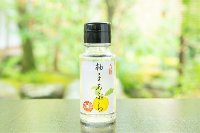 柚子あぶらは、黄柚子の風味を太白胡麻油に凝縮させた和風フレーバーオイルです。瓢亭十五代目の高橋義弘さんが今年の3月に考案しました。