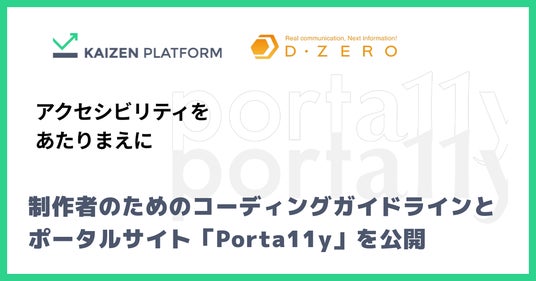 株式会社Kaizen Platform(本社:東京都港区、代表取締役:須藤 憲司、以下「Kaizen Platform」)のグループ会社である株式会社ディーゼロ(以下「ディーゼロ」)は、このたび、制作者のためのコーディングガイドラインを公開いたしました。また、これを皮切りとして、アクセシビリティに取り組む制作者のためのポータル「Porta11y(ポータリー)」上で、Web制作を行う全ての制作者の皆様が利用できる様々な環境やツールも順次提供していくことで、誰一人取り残さないウェブの実現を支援してまいります。