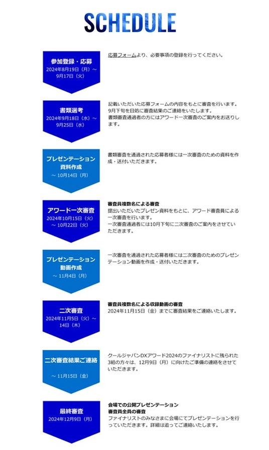 アワード審査スケジュールは下記の通りとなります。