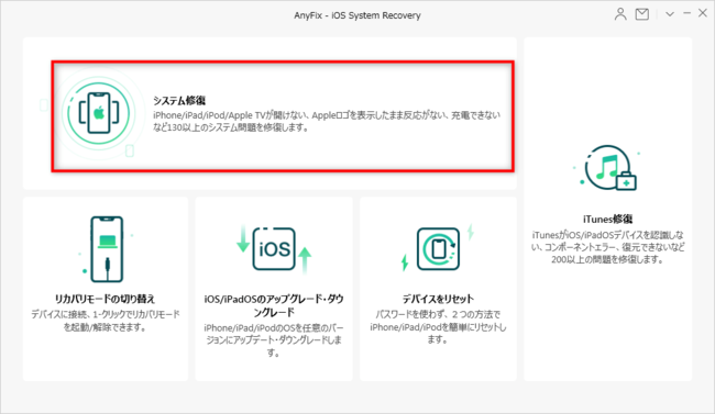 Step 2:USBケーブルでiPhone/iPad/iPod touchをパソコンに接続して、「システム修復」機能をクリックします。