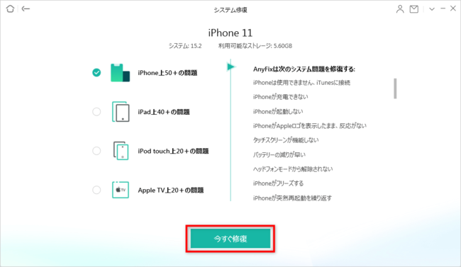 AnyFixでiOS 16アップデートの不具合を修復する手順