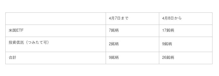 同時に計17銘柄のETF・投資信託を新たに提供開始